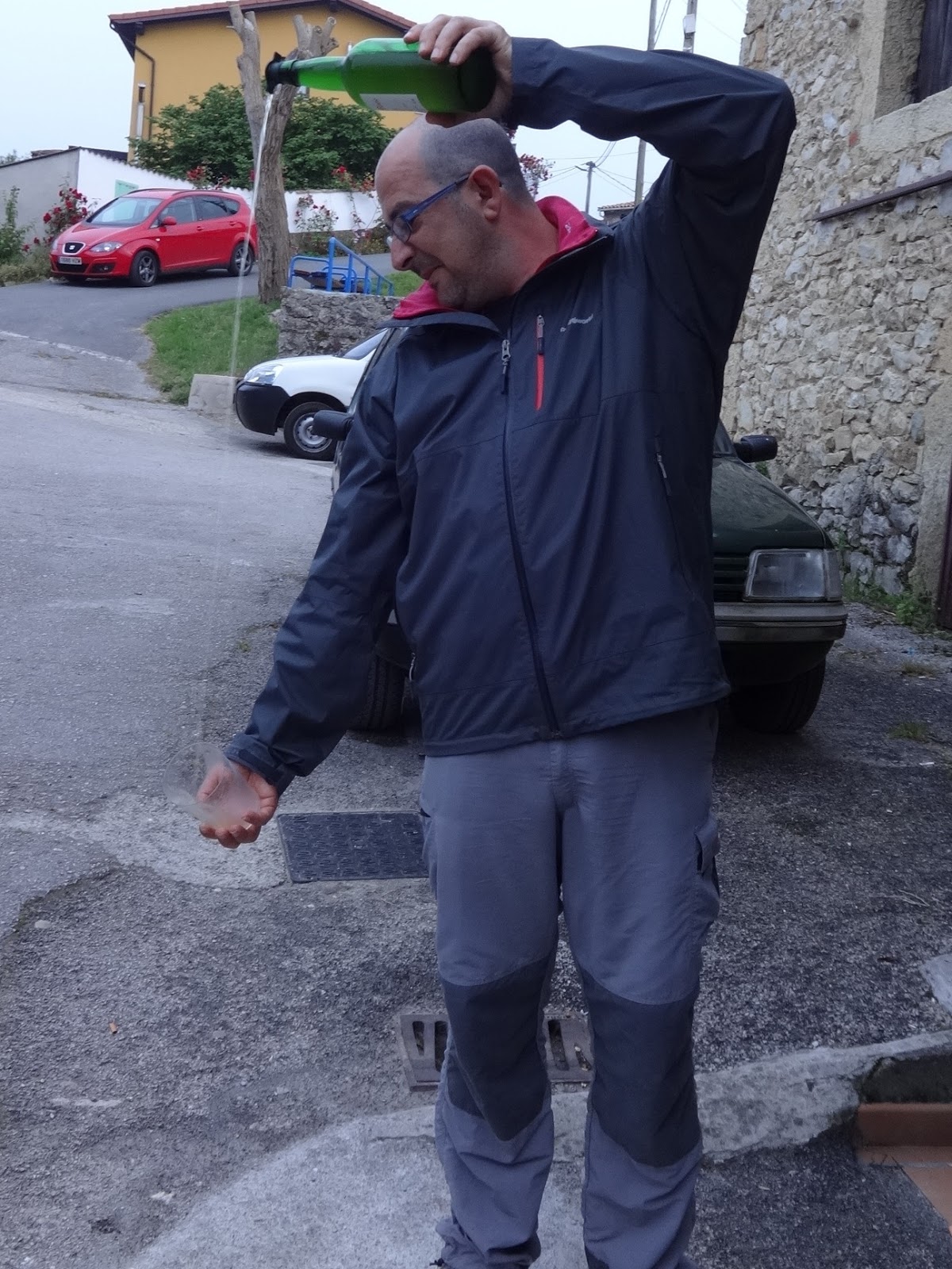 A partir de aquí, la lluvia comenzó a remitir. La niebla no. Intuíamos que el pueblo no podía estar muy lejos, pero nos quedaba un último esfuerzo: remontar una loma tapizada de hierba y así llegar a un camino empedrado que, ya en llano, nos lleva atravesando prados donde pastan caballos y vacas, hasta la localidad de Tresviso.